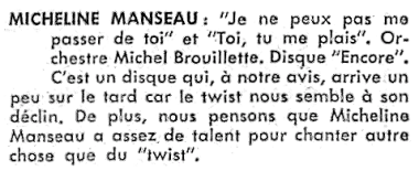 (vers 1956-1966) à la radio, à la télévision et au cabaret. Elle a réalisé trois 45 tours sur trois étiquettes différentes. Elle était la cousine et amie de Rolande DesOrmeaux. Radiomonde et Télémonde, 20 décembre 1958