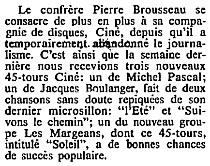 Trio formé de deux gars et d'une fille, les Margeans ont enregistré trois chansons dont l'une apparaît sur leurs deux 45 tours. Ils ont participé à quelques émissions de télé comme Boubou, Discomanie et Jeunesse au cours de l'année 1973.