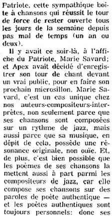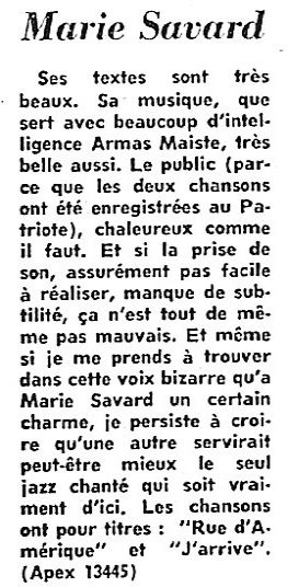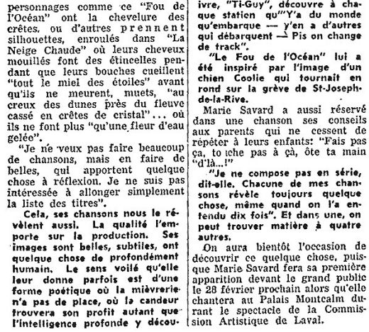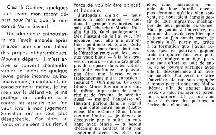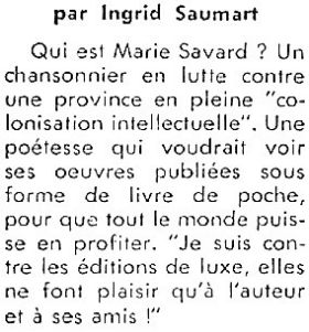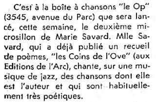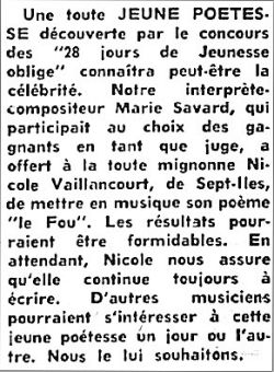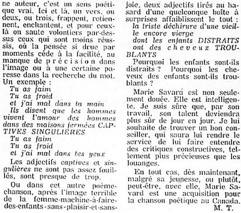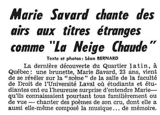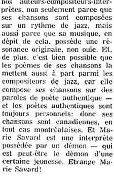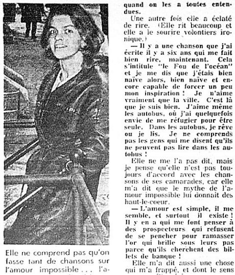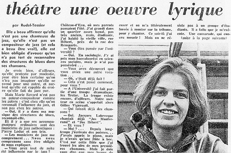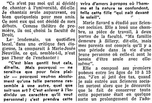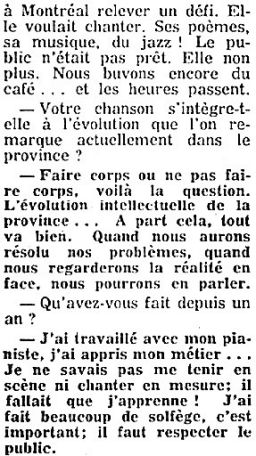 Un des premiers articles consacrés à cette jeune femme poète et auteure-compositeure.