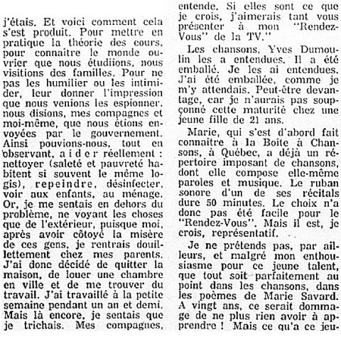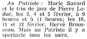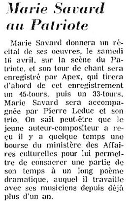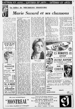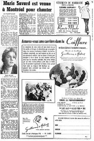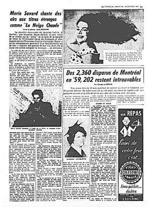Marie Savard à la une de l'hebdomadaire La Patrie du 14 février 1960.