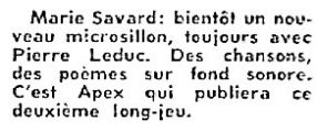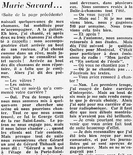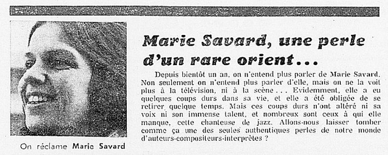 Sans prétention, cette page vous présente les premiers pas de Marie Savard à l'aube de sa carrière médiatique. Vous pourrez prendre connaissance de sa discographie et même écouter des chansons et des poèmes.