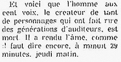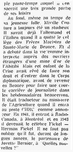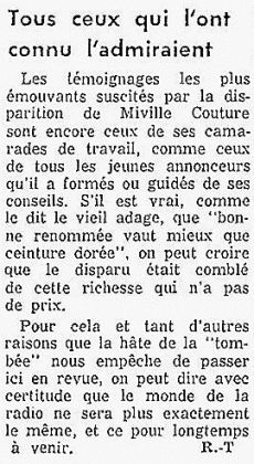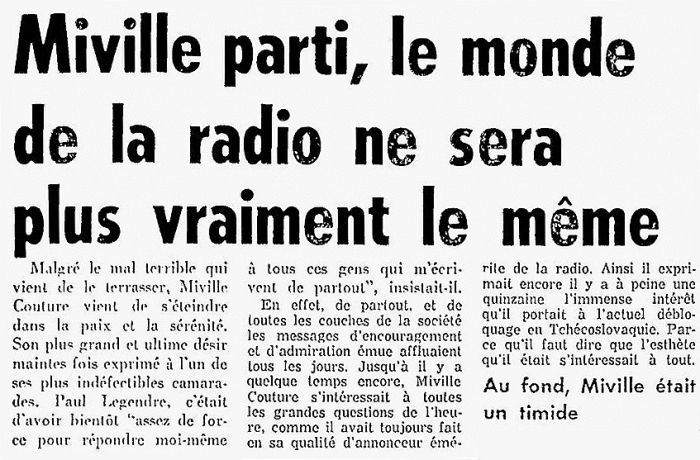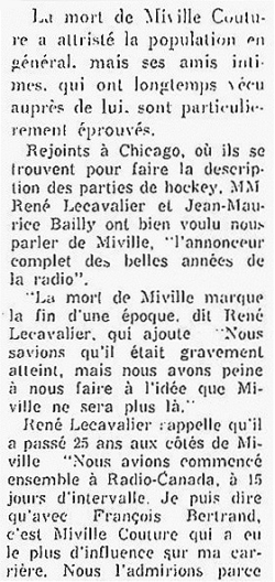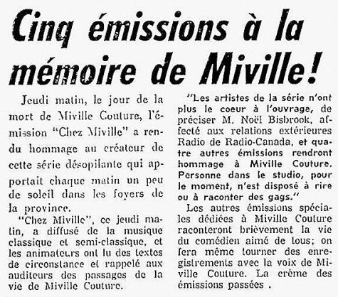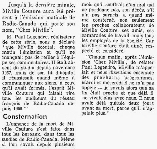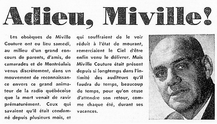 Décès de Miville Couture le 24 avril 1968