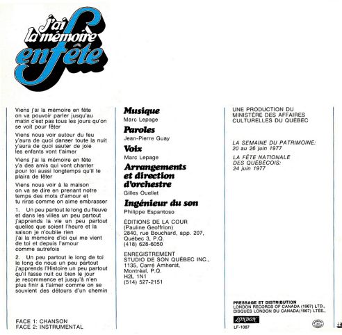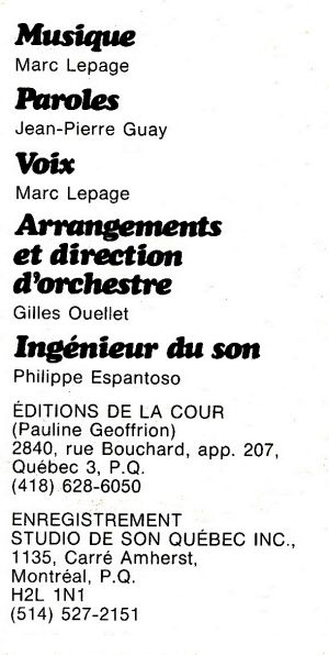 Photo de Marc Lepage provenant de l'album "Madame mon âme", Éditions JLG 1983