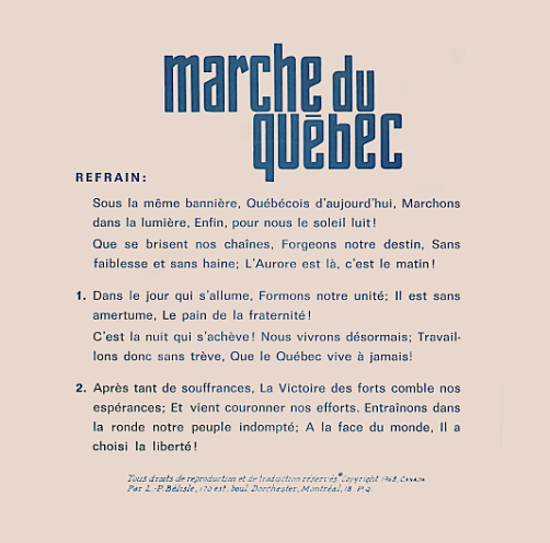 "La marche du Québec", paroles et musique de L. P. Belisle, version vocale.
