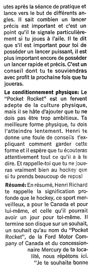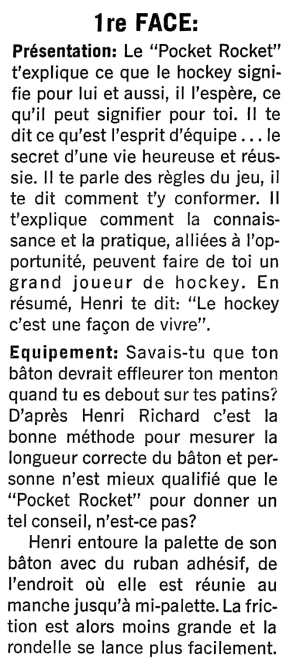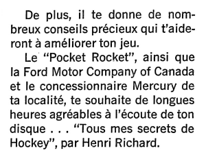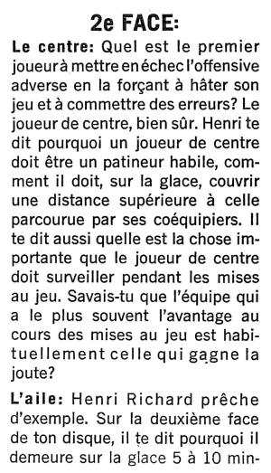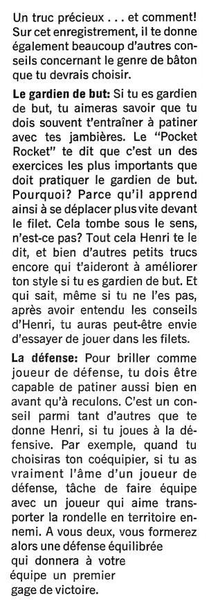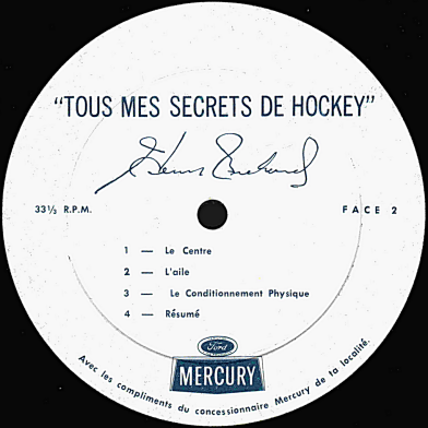 Sur ce disque, qui s'adresse aux jeunes adeptes, il livre tous ses secrets de hockey ou presque... Quand fut enregistré ce microsillon, il en possédait un autre dont il ignorait encore l'existence: celui de sa longévité!