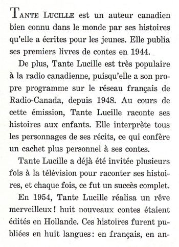 "Les plus beaux contes de Tante Lucille avec Lucille Desparois. Émission radiophonique CBF.