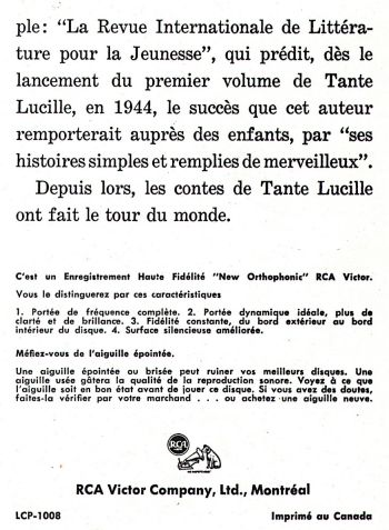 "Contes de Tante Lucille" avec Lucille Desparois. Émission radiophonique CBF.