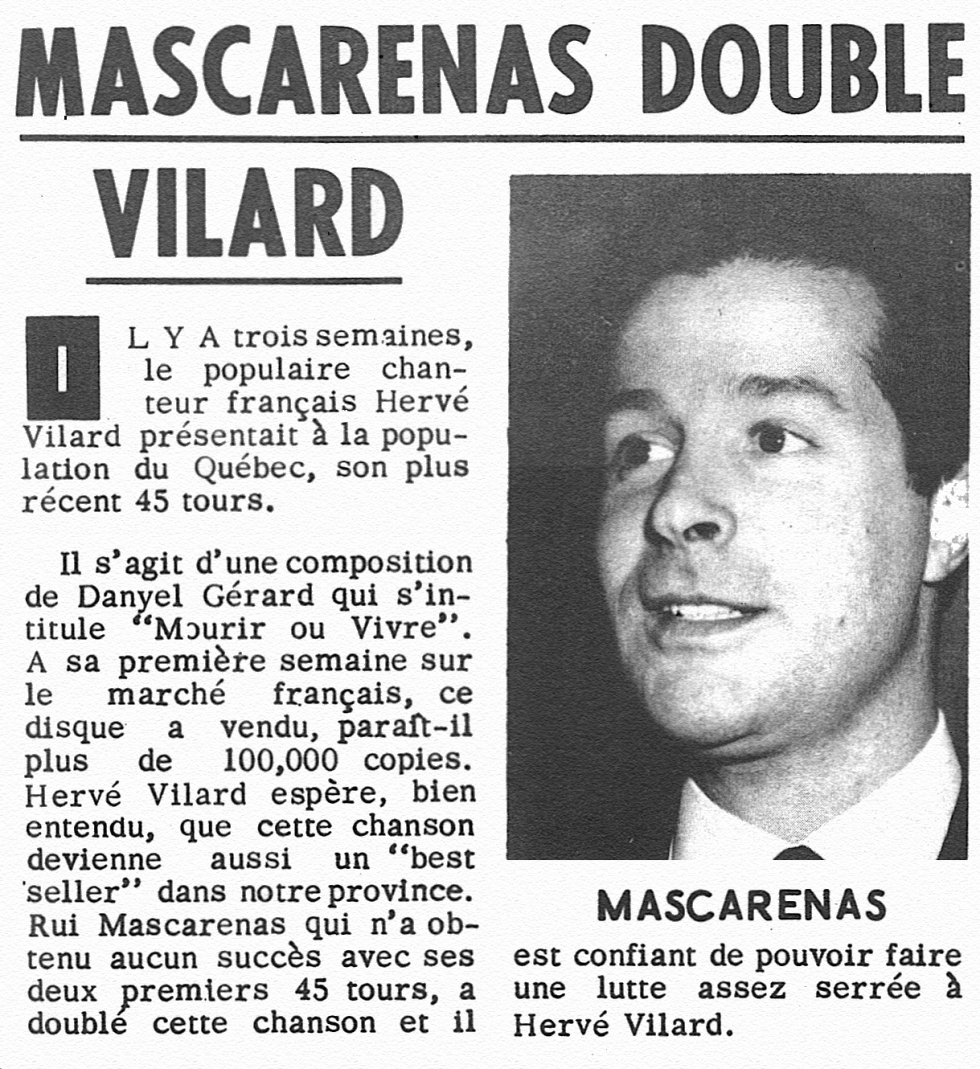 Rui Mascarenhas (Mascarenas) est un chanteur d'origine portugaise venu au Québec au milieu des années soixante. De son passage ici, il nous a laissé quelques 45 tours sur étiquette Trans-Canada.