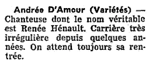 Chanteuse à la carrière irrégulière ayant enregistré au moins cinq chansons en 1960 et 1961. Au début des années quatre-vingt, elle se tourne définitivement vers l'astrologie.