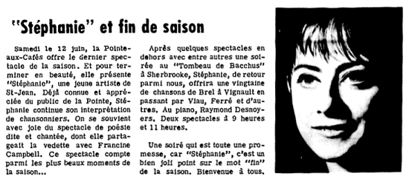 On la dit originaire du Lac St-Jean, mais semble avoir passé une partie de sa vie dans la région de St-Jean-sur-le-Richelieu et d'Iberville. Connue dans le milieu des boîtes à chanson de l'époque (La Pointe-aux-Cafés) , elle a même fait la première partie d'un spectacle de Jean-Pierre Ferland au début d'avril 1967. Après cette période, il est difficile de retracer la jeune femme à qui on prédisait un bel avenir.