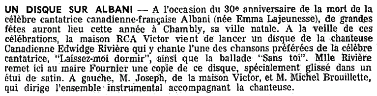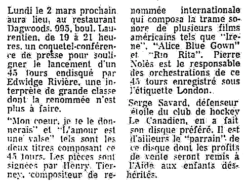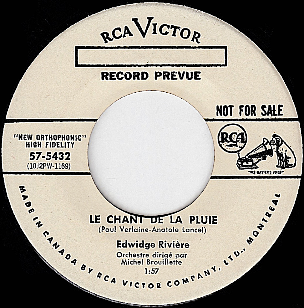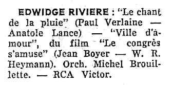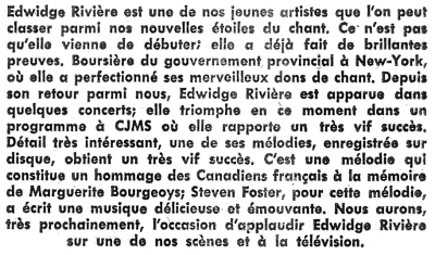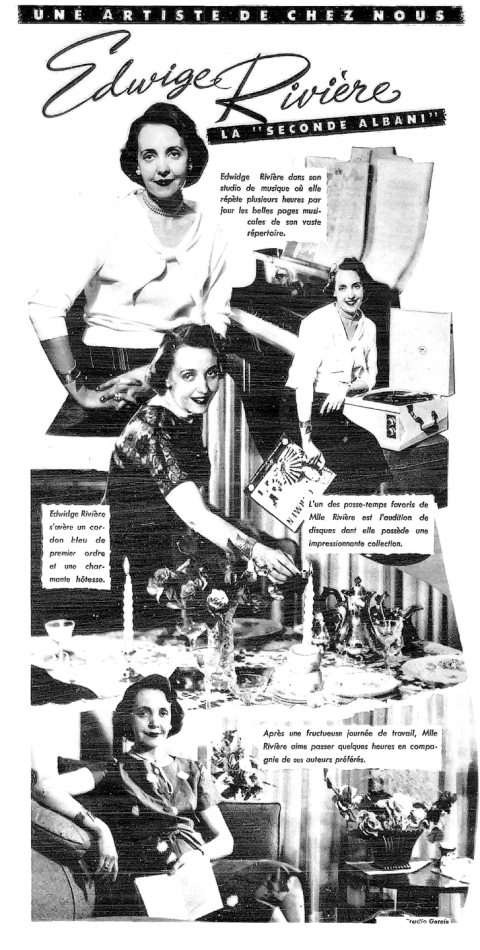 Edwidge Rivière est née Yvette Rivet à Montréal vers 1919. Elle a enregistré sous ce nom un disque en 1939: