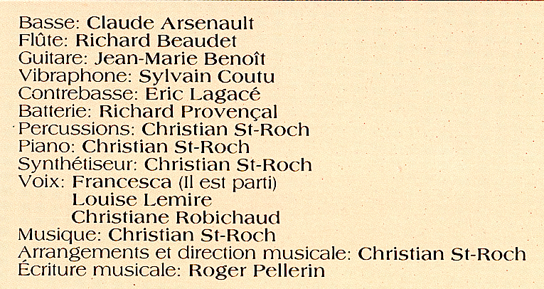 Quelques chansons dont la musique a été composée par Christian St-Roch: