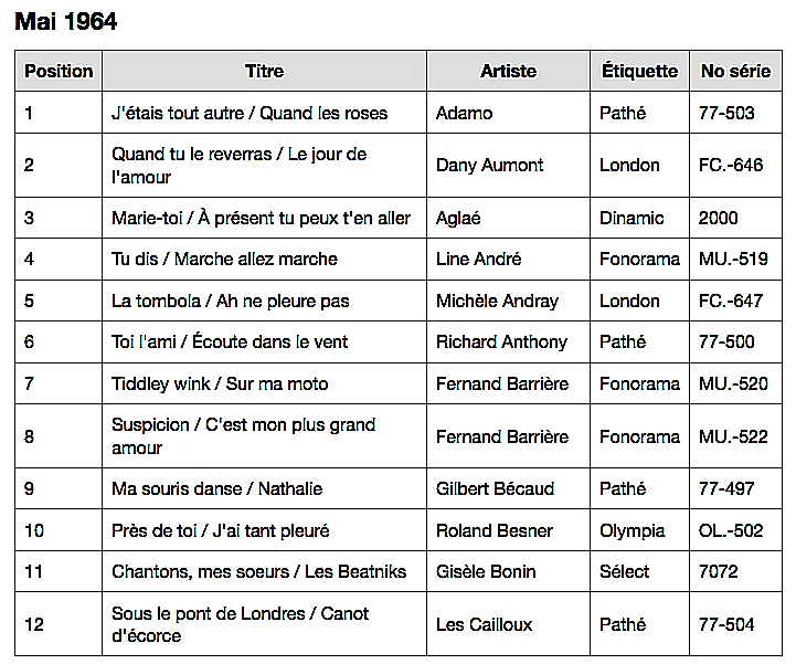 Chanteur ayant enregistré au moins cinq chansons que l'on retrouve sur deux 45 tours et sur deux albums-compilation.