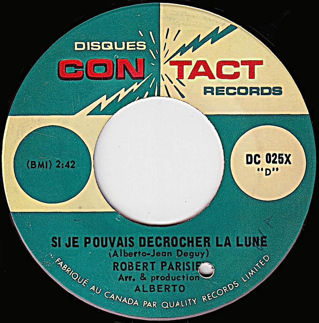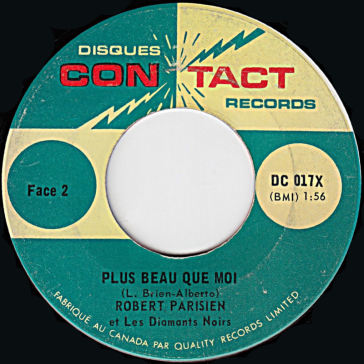 On peut lire sur ce 45 tours "Robert Parisien et les Diamants noirs". Il s'agit en fait de leur premier disque. Par contre, sur leur deuxième simple (plus bas), apparait seulement le nom "Robert Parisien" alors qu'on aurait dû y voir également celui du groupe "Les Diamants noirs". Les deux 45 tours ont été réalisés en 1966.