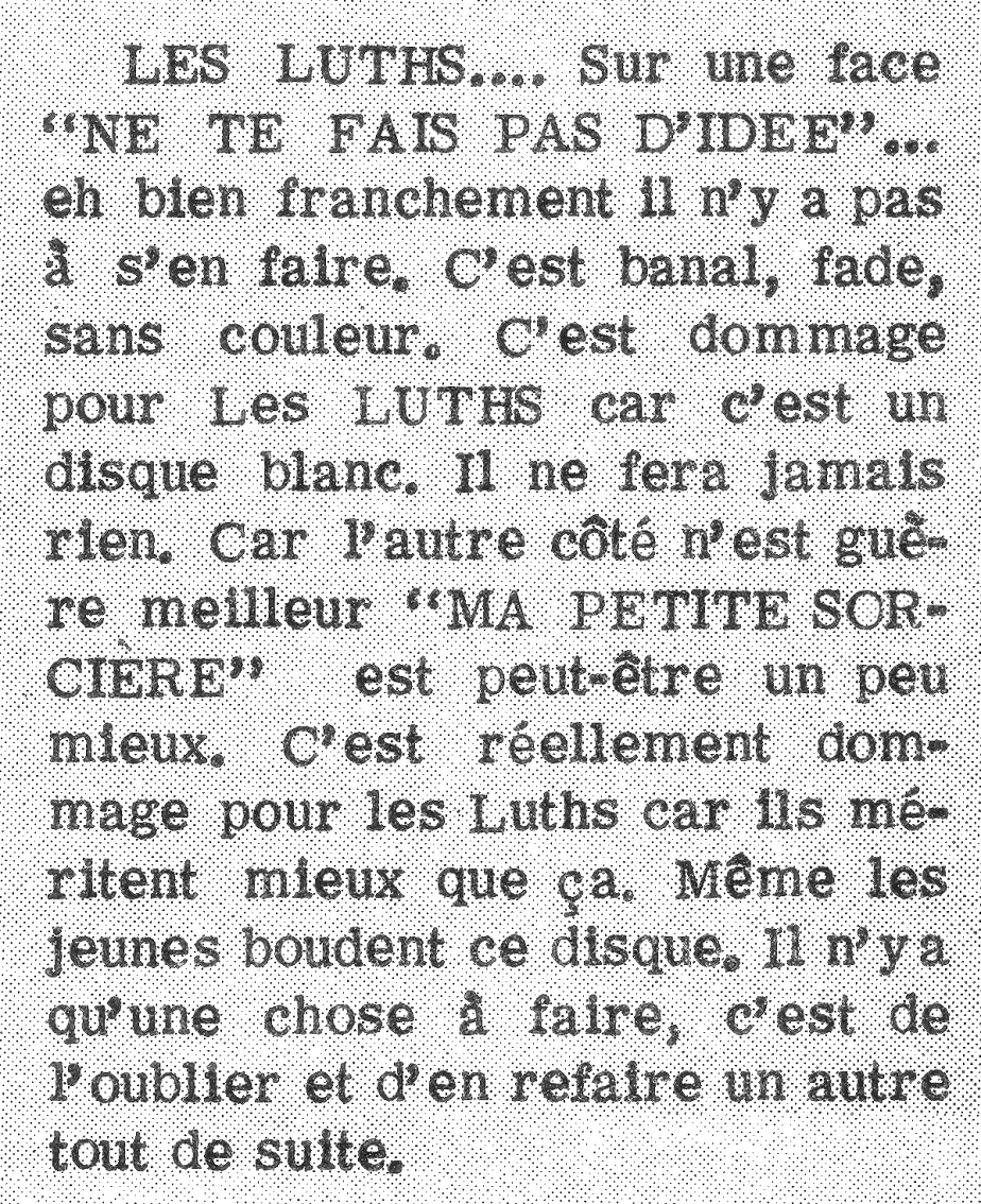 Ils réalisent un premier 45 tours en mai 1969 avec deux titres originaux sur l'étiquette Disco Bel-Air (la chanson Joey atteint même le palmarès Méritas). Toujours avec cette maison de disques, leur deuxième et dernier simple n'obtient pas le succès espéré. Le périple des Luths prend fin au début de 1970, à peine plus de douze mois après celui des Lutins.