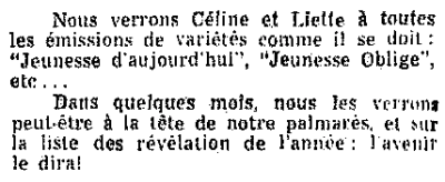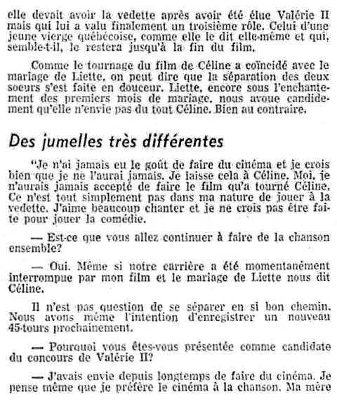 Nées d'un père mexicain et d'une mère italienne, les jumelles Lopez, Céline et Liette, furent adoptées par une famille montréalaise à l'âge de deux mois en 1953. Déjà enfants, elles présentent à l'école des sketches où elles dansent et chantent. À douze ans, on les remarque comme danseuses à "Jeunesse d'aujourd'hui". Elles travaillent même dans les cabarets sous la surveillance de leur mère. À quinze ans, elles paraphent un contrat avec RCA Victor avec qui elles réaliseront deux 45 tours. On les consacre Découvertes de l'année au Gala du disque de 1968. En 1969, elles produisent deux simples avant de se séparer. En effet, Liette épouse François Bégin des Mersey's et forme avec ce dernier un nouveau duo. Pour sa part, Céline entame une carrière au cinéma au début des années soixante-dix.