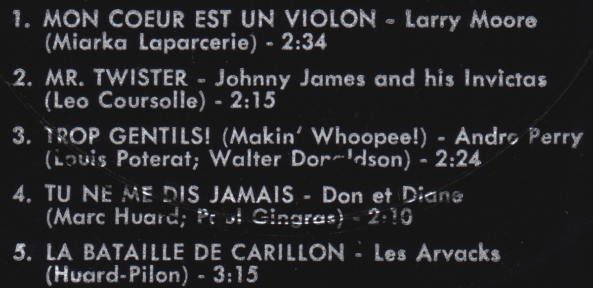 Sur l'autre face, la chanson Tu ne dis jamais parue sur le microsillon 10 chansons 10 vedettes sur étiquette Coda, subsidiaire de Vénus.
