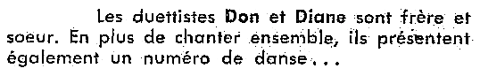 Don et Diane ainsi que Diane et Rémy ont produit chacun un 45 tours.