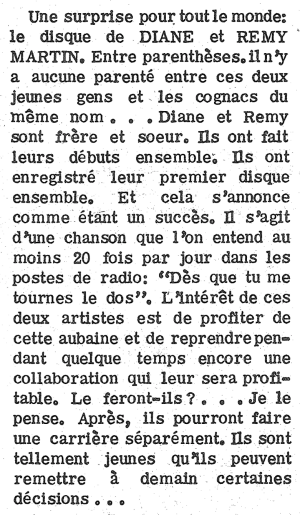 Tout indique qu'ils n'ont pas travaillé ensemble sous le nom de Diane et Rémy Martin (sauf pour la promotion de leur simple). On les rencontre chacun de leur côté dans des cabarets. Rémy accompagne en public Christyne Chartrand
