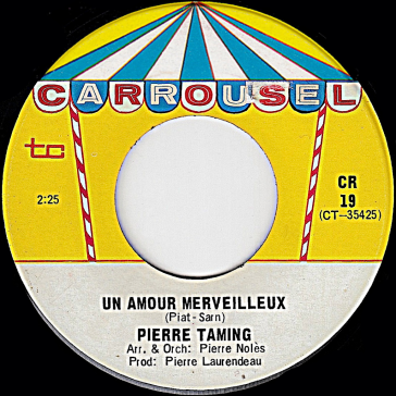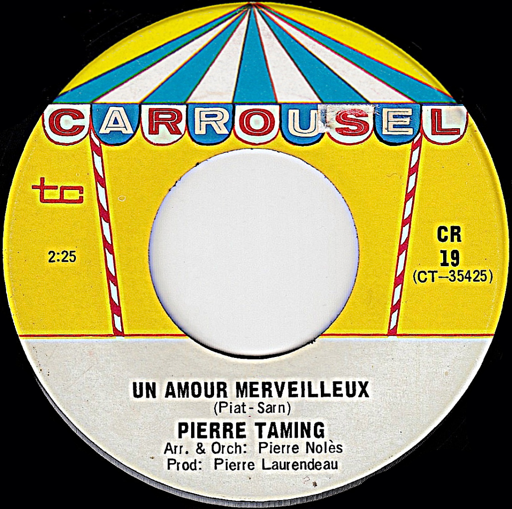 Chanteur martiniquais né en 1944, Pierre Taming fait un premier séjour en terre québécoise au début des années soixante. Il revient à Montréal pour Expo 67 et décide par la suite de rester au Québec. Il a produit au moins deux 45 tours: l'un chez Carrousel en 1967 et l'autre chez London en 1972.