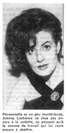 Mannequin montréalais, Joanne Lachance amorce une carrière dans la chanson à la fin des années cinquante. Elle débute au cabaret où on l'applaudit régulièrement, notamment dans la Vieille Capitale. Elle se retrouve, à l'invitation de Tex Lecor, à la nouvelle boîte "La Poubelle" où elle ne passe pas inaperçue. Elle participe à la revue Pique Atout et à celle d'Olivier Guimond et Paul Desmarteaux: elle y démontre ses talents de comédienne. Elle enregistre son unique 45 tours avec la maison de disques "Fontaine" en 1963.