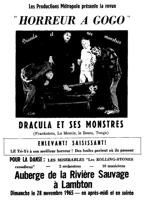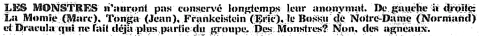 En 1965, les Shadols, habituellement vêtus de cuir, se métamorphosent en créatures hideuses pour se démarquer des autres groupes déguisés et s'appellent "Les Monstres". En spectacle, ils vont et viennent s'amusant à faire peur aux jeunes filles qui prennent un malin plaisir à s'égosiller.