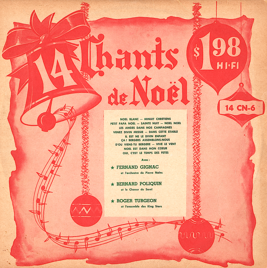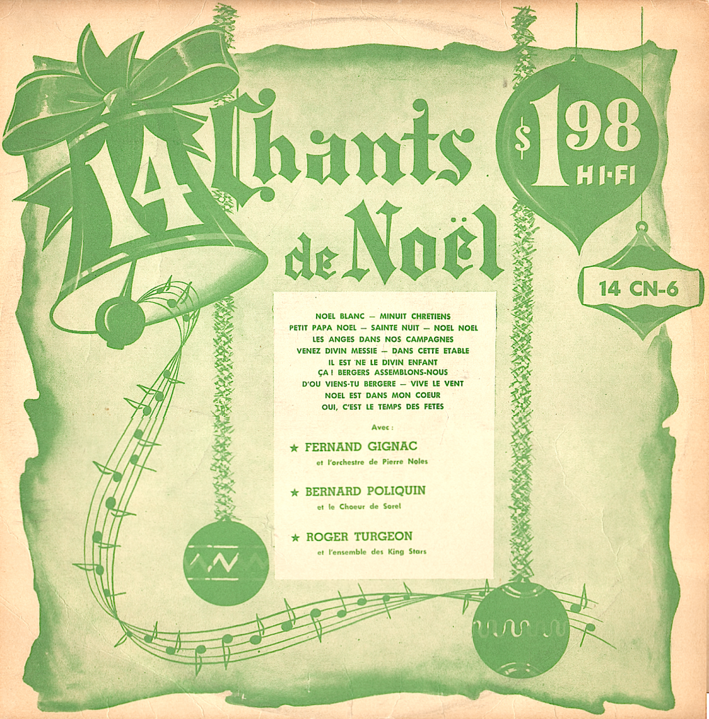 Trois interprètent masculins de style musical différent se répartissent les 14 chants de Noël de la façon suivante: Fernand Gignac (2), Bernard Poliquin (3) et Roger Turgeon (9).