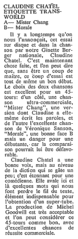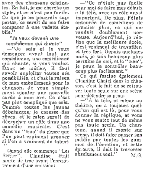Comédienne avant tout, Claudine Châtel a réalisé un 45 tours en 1973 sur étiquette "Trans-World". Elle a également écrit trois livres dont un relate la vie de son père, Marcel Cabay.