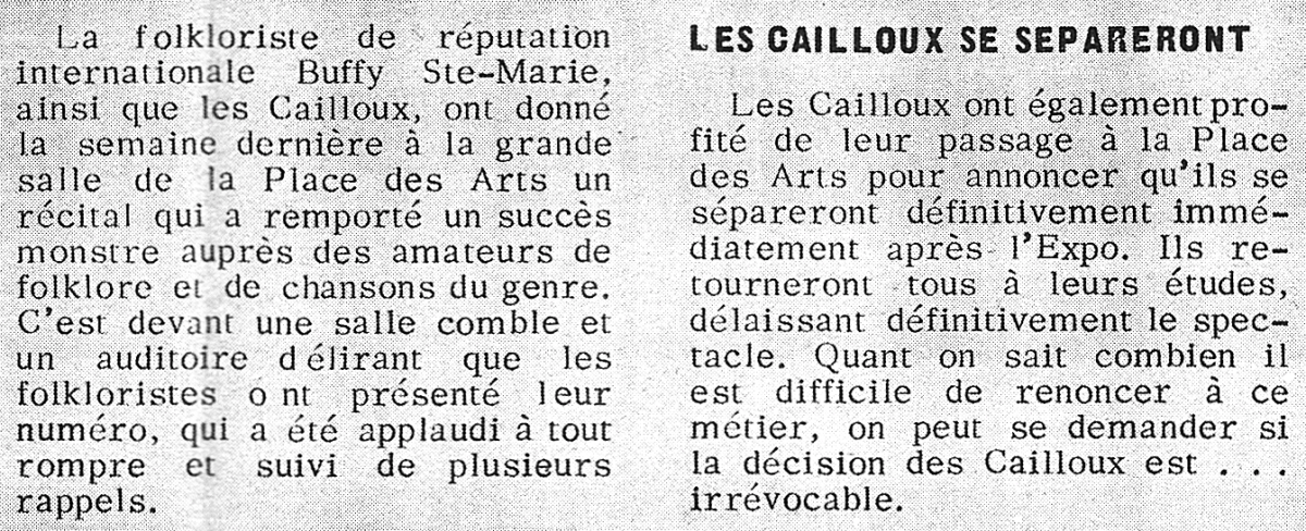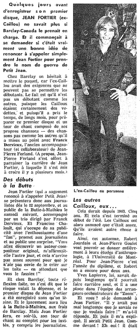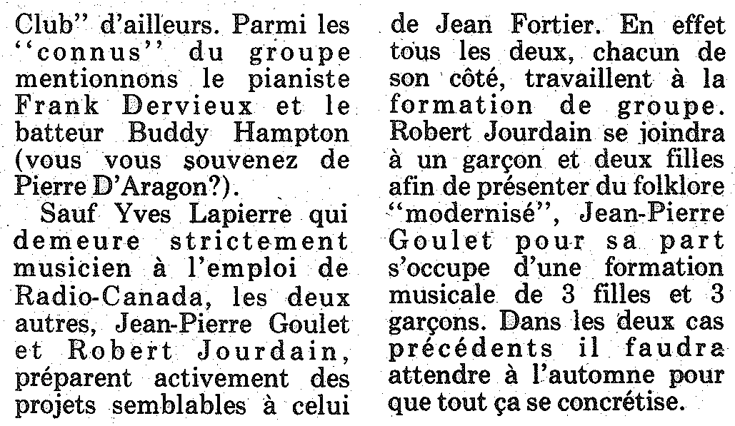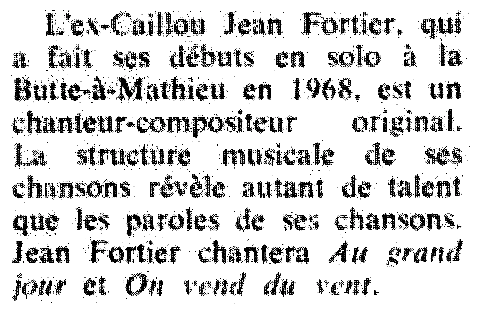 Dans un article précédent, on mentionne la parution de deux 45 tours pour le mois d'avril 1970. En réalité, le premier sort en décembre 1969 et l'autre (la version anglaise des deux chansons) probablement au début de 1970. Le site "Disqu-o-Québec" situe On vend du vent/Au grand jour en 69 et Sellin' Sunshine/On My Mind en 70. Dans ce dernier cas, je n'ai trouvé aucune info dans les journaux disponibles.