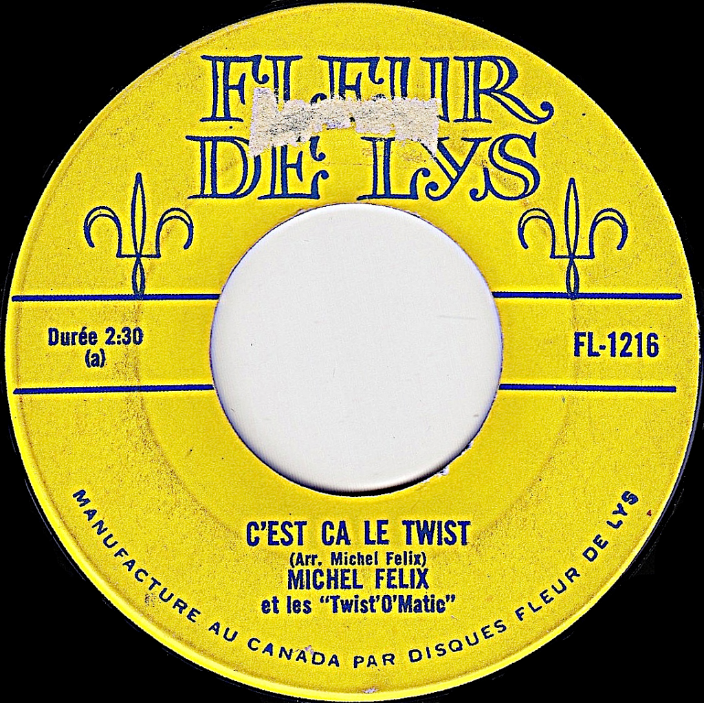 En 1962 et 1963, un certain Michel Félix enregistre deux simples sur étiquette "Fleur de lys". À chaque occasion, une des deux chansons se classe au palmarès de CKAC. Son premier 45 tours, présenté ici, comporte deux succès: C'est ça le twist (Chubby Checker) accompagné par les "Twist'O'Matic et sur l'autre face, Es-tu seule mon amour (Elvis Presley) avec "Les Sentimentals".