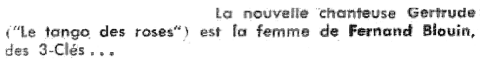 Son nom de baptême est Gertrude Tremblay, née à Montréal en 1931 et décédée à Montréal le 13 juillet 1978.