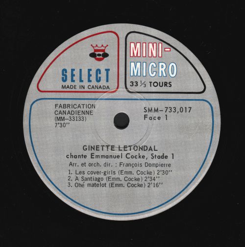 Ginette Letondal "chante Emmanuel Cocke", Select Mini-Micro,