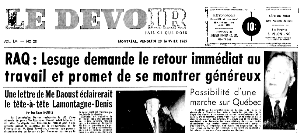 Le Devoir, 12 janvier 1965
