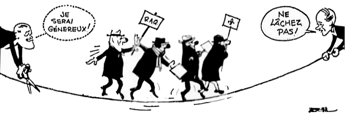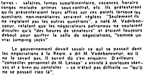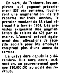 Quelques extraits et caricatures du quotidien "Le Devoir" du 5 décembre 1964 au 20 février 1965 portant sur ce conflit de travail.