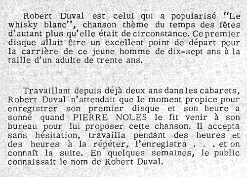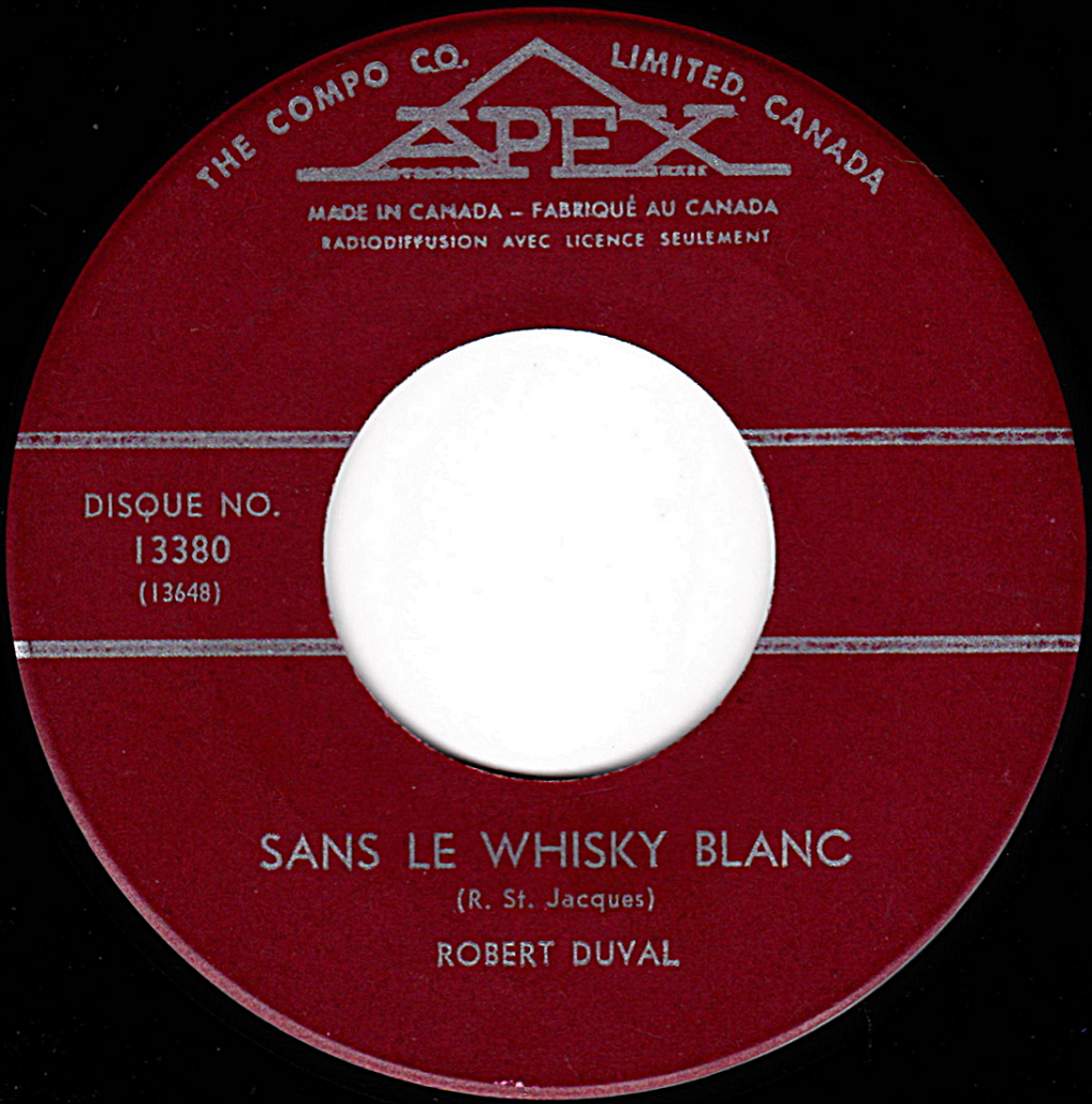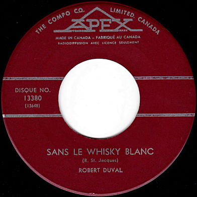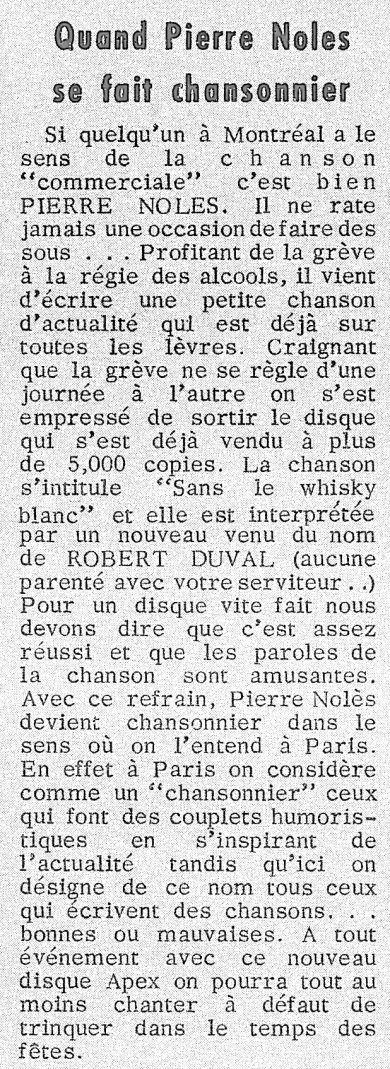 Selon l'étiquette du 45 tours, l'auteur-compositeur de la chanson "Sans le whisky blanc" est R. St-Jacques et non Pierre Nolès qui signe cependant l'autre chanson du disque, "Le cheveu blanc".