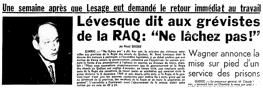 Intervention publique du premier ministre Jean Lesage, sans succès.