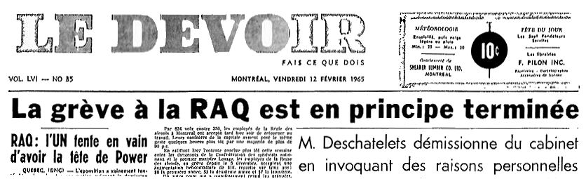 Le Devoir, 19 février 1965