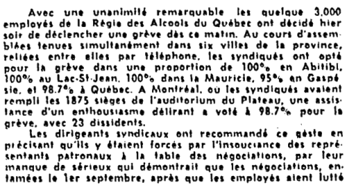 Grève à la Régie des alcools