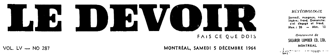 Le Devoir, 5 décembre 1964