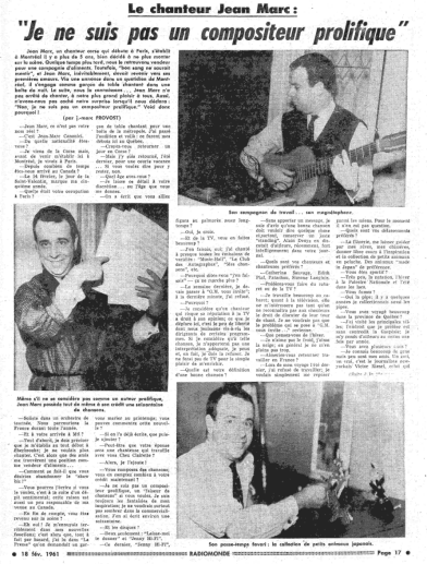 Radiomonde, 18 février 1961