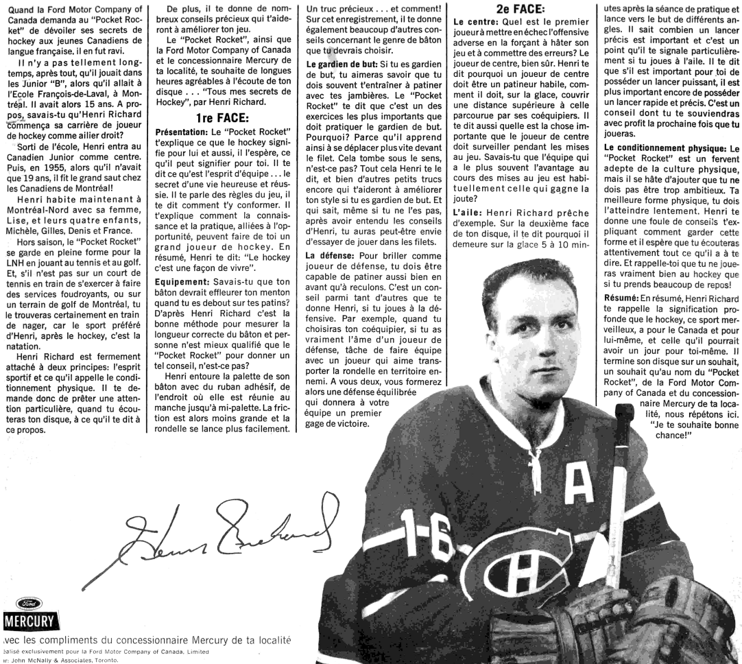Sur ce disque, qui s'adresse aux jeunes adeptes, il livre tous ses secrets de hockey ou presque... Quand fut enregistré ce microsillon, il en possédait un autre dont il ignorait encore l'existence: celui de sa longévité!