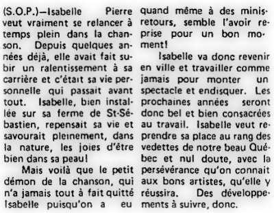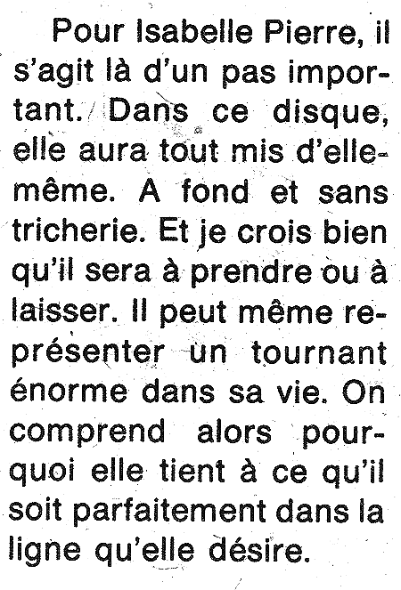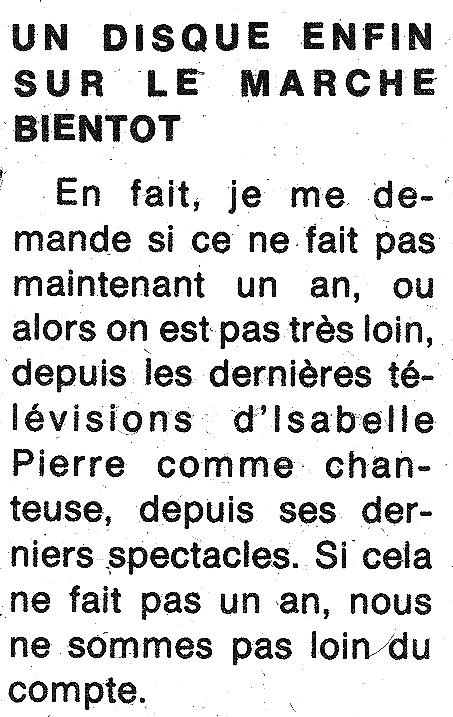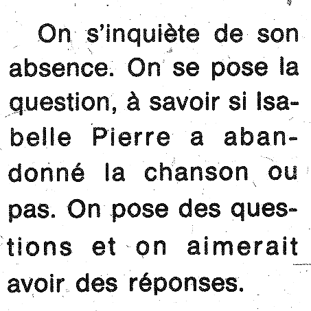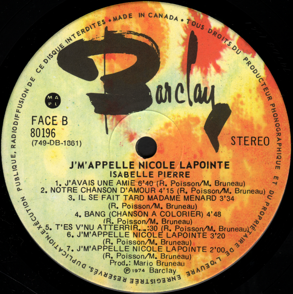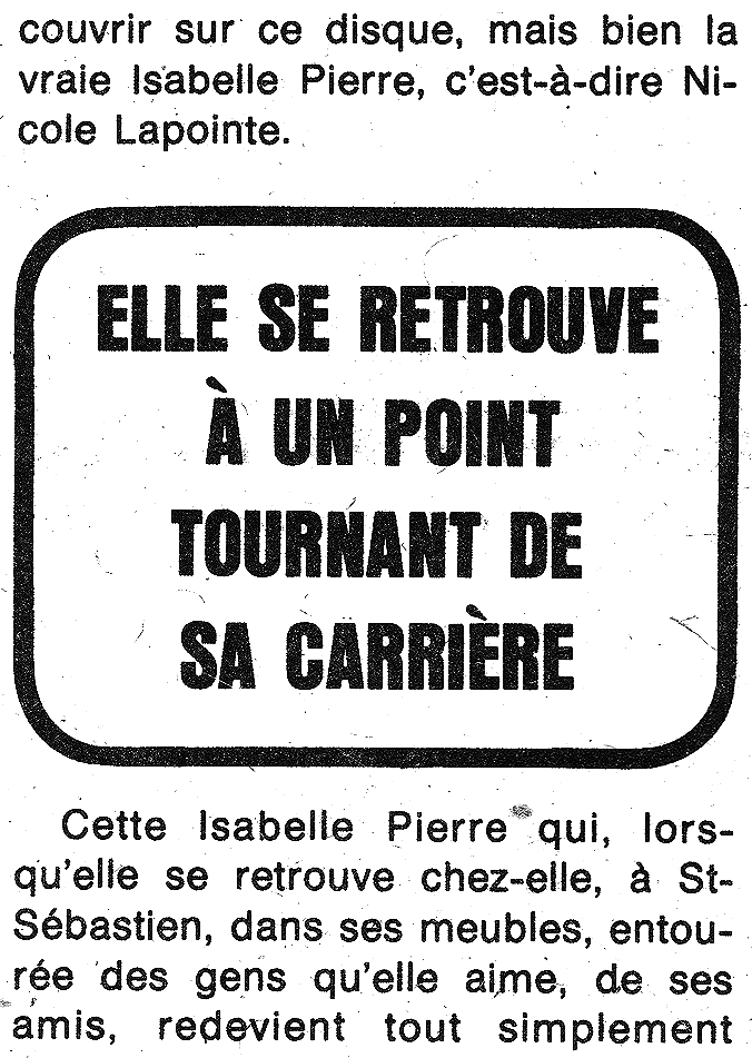 Le dernier microsillon d'Isabelle Pierre ou le premier de Nicole Lapointe?
