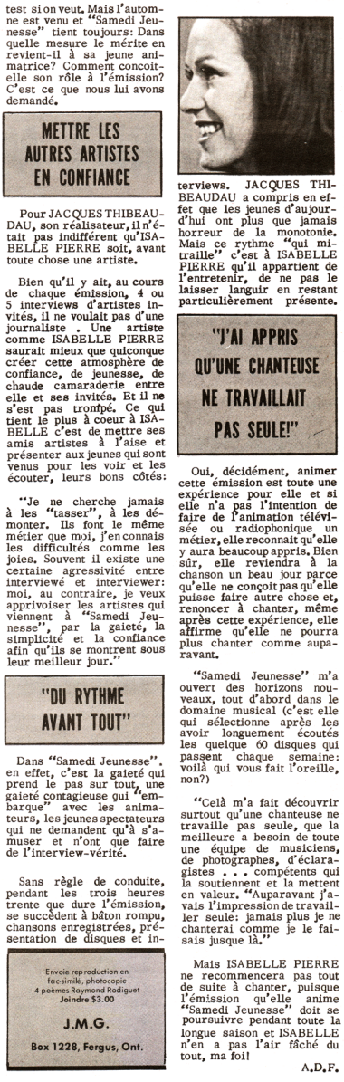 Journal des Vedettes, 19 octobre 1974