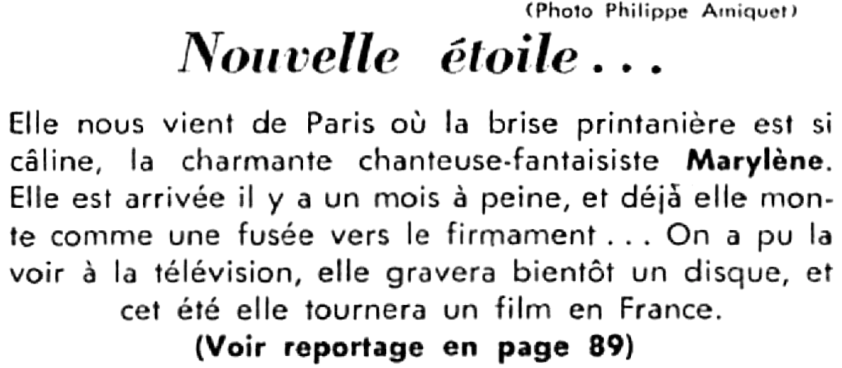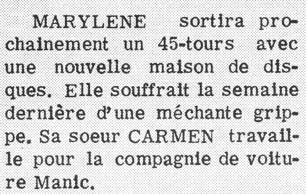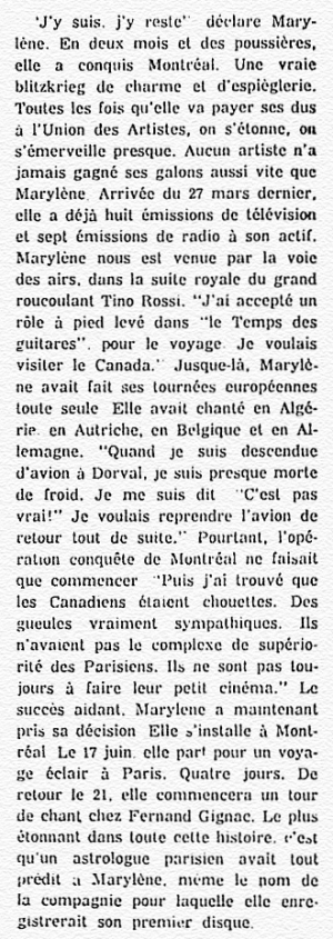 Est-ce que Marylène savait tout ce qui allait lui arriver en venant au Québec? On peut affirmer sans trop se tromper que les astres lui ont été favorables! Elle n'est pas devenue une star, mais elle a su jouer les bonnes cartes pour assurer son avenir.