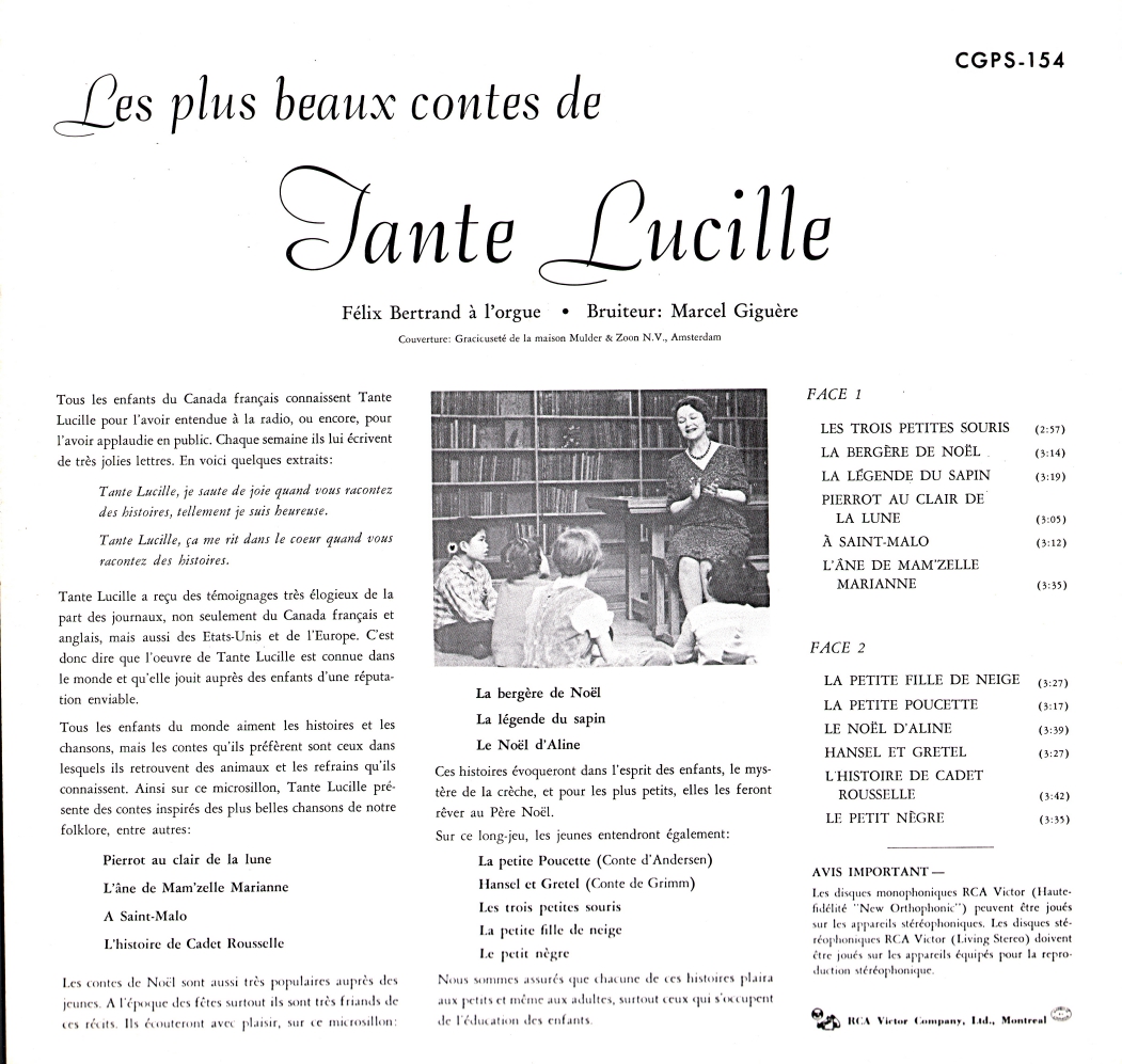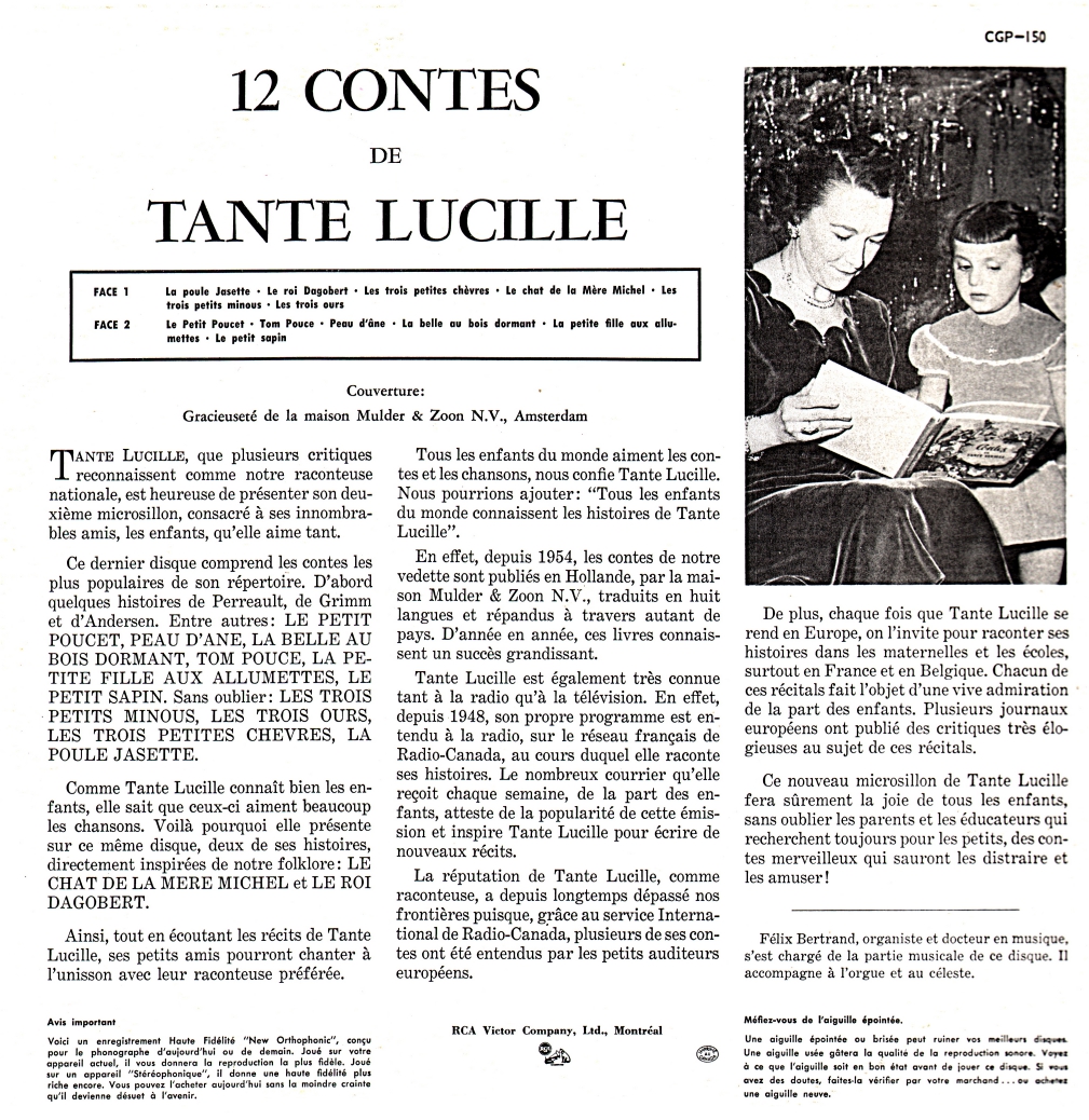 "12 contes de Tante Lucille" avec Lucille Desparois. Émission radiophonique CBF.