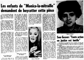 Il devait y avoir 30 représentations de Monica la mitraille du 3 juillet au 4 août 1968.