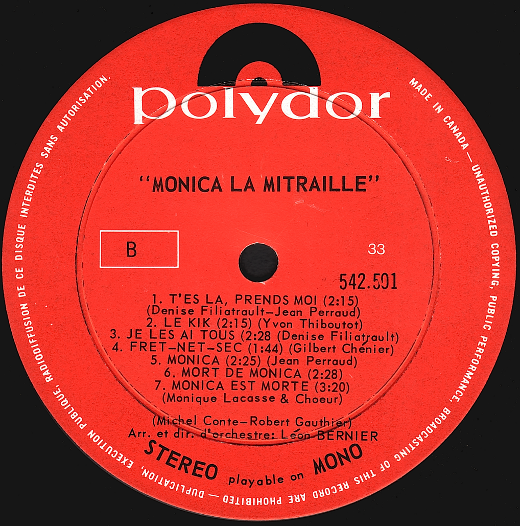 D'autre part, Claude Fournier (Deux femmes en or) avait projeté de faire un film sur la vie de Monica Proietti, surnommée entre autres, Machine-gun Molly (Monica la mitraille), avant d'abandonner l'idée après en avoir discuté avec des proches de "l'héroïne" tuée par des policiers en septembre 67. Le cinéaste avait pressenti Dominique Michel dans le rôle principal et Tony Roman dans celui de l'ami de Molly.