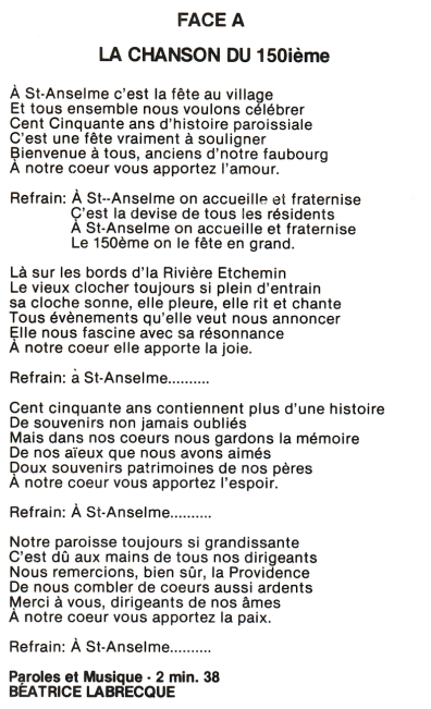 Éditeur [Saint-Anselme] : Comité directeur des fêtes du 150e, [1980] (Lac-Etchemin : Presses lithographiques) [2]