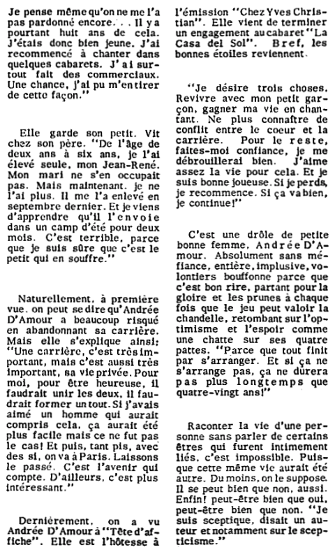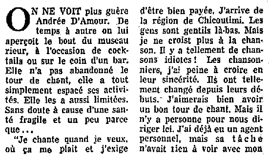 Chanteuse à la carrière irrégulière ayant enregistré au moins cinq chansons en 1960 et 1961. Au début des années quatre-vingt, elle se tourne définitivement vers l'astrologie.