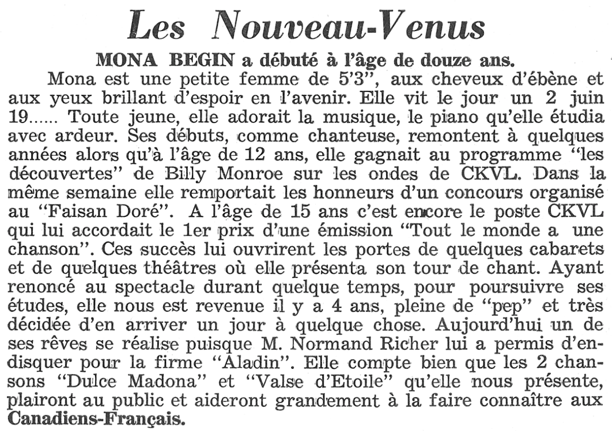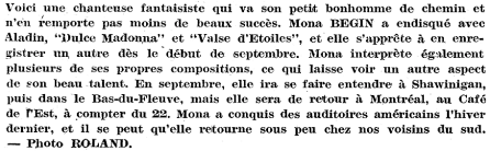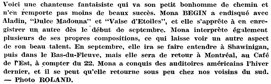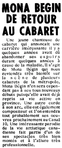 Mona Bégin a été emportée par le cancer le 29 mars 1974.